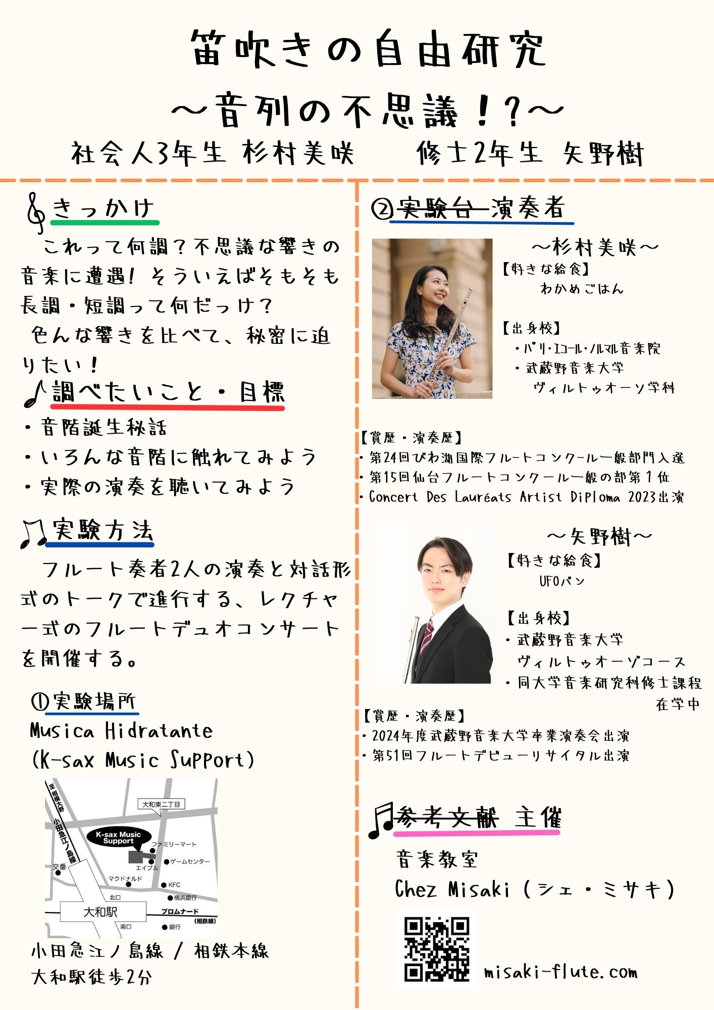 フルート奏者2人の演奏と対話式のトークで進行する、レクチャー式のフルートデュオコンサート、「笛吹きの自由研究シリーズ」の第1弾!